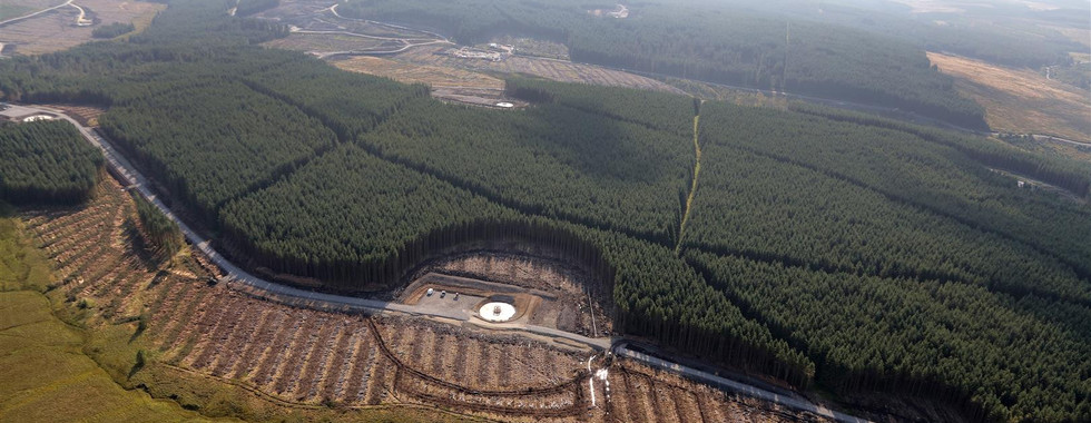 We were the Principal Contractor for the Balance of Plant, Design and Build of the civils and electrical works for a 226MW wind farm, located near Dalmellington, East Ayrshire. The works included earthworks, 50 no. wind turbine generator/turbine (4.8MW Nordex turbines) foundations and associated large hard standing/erection platforms, on-site access roads with multiple bridges/culverts over watercourses (including a new road with 32m-span steel/reinforced concrete composite bridge, drainage (temporary and permanent), cable tracks including the installation of underground 132kV/33kV cables, comms and earth cables, site compounds, several temporary compounds, borrow pits, public road improvements including specialist strengthening of two existing bridges on the A713, and landscaping including peat restoration.